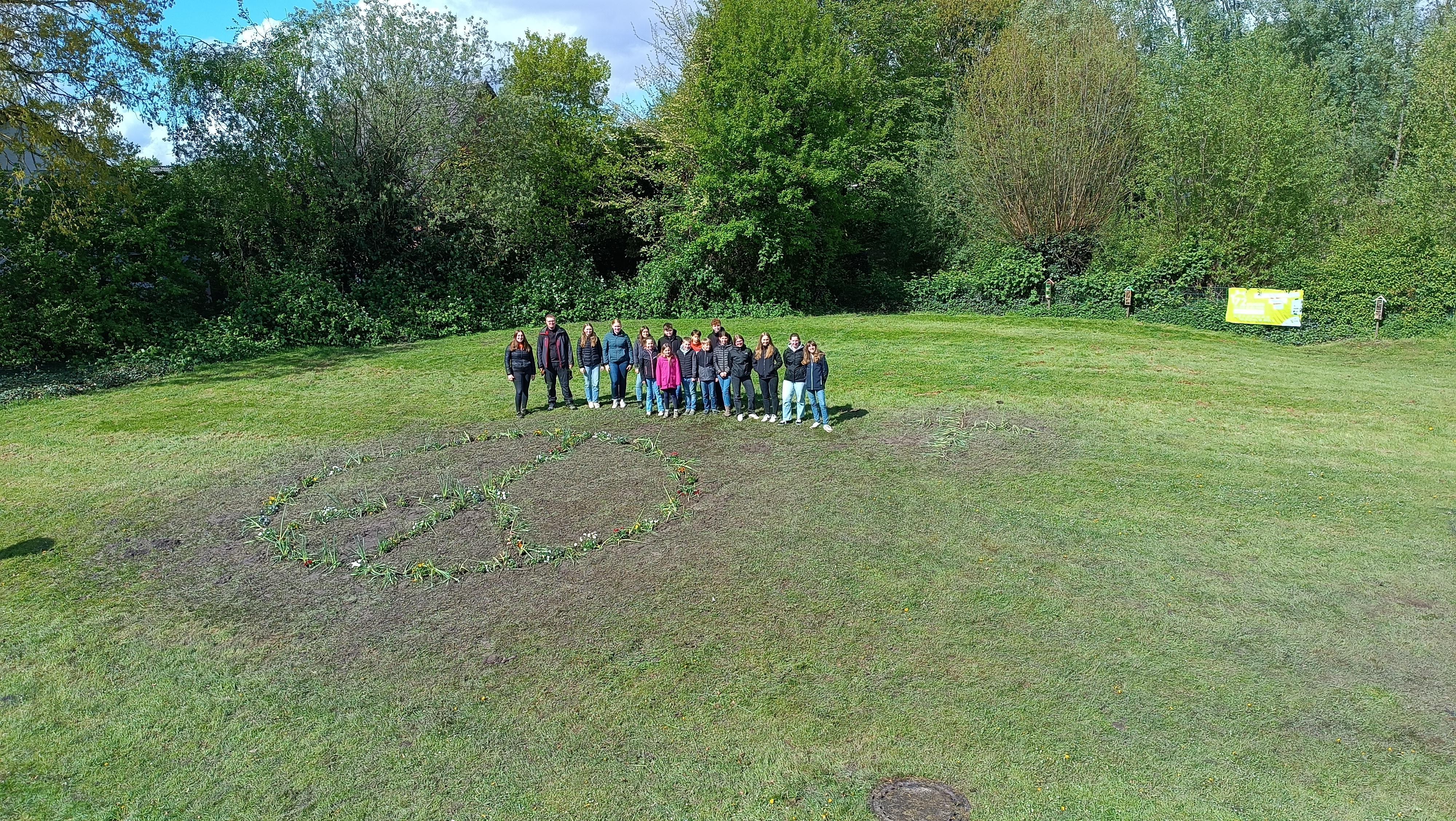 Ein blühendes Friedenzeichen: Die Messdiener haben die Blumenwiese neben dem St. Vitus-Stift als blühendes Peace-Zeichen im Rahmen der 72-Stunden-Aktion umgestaltet.