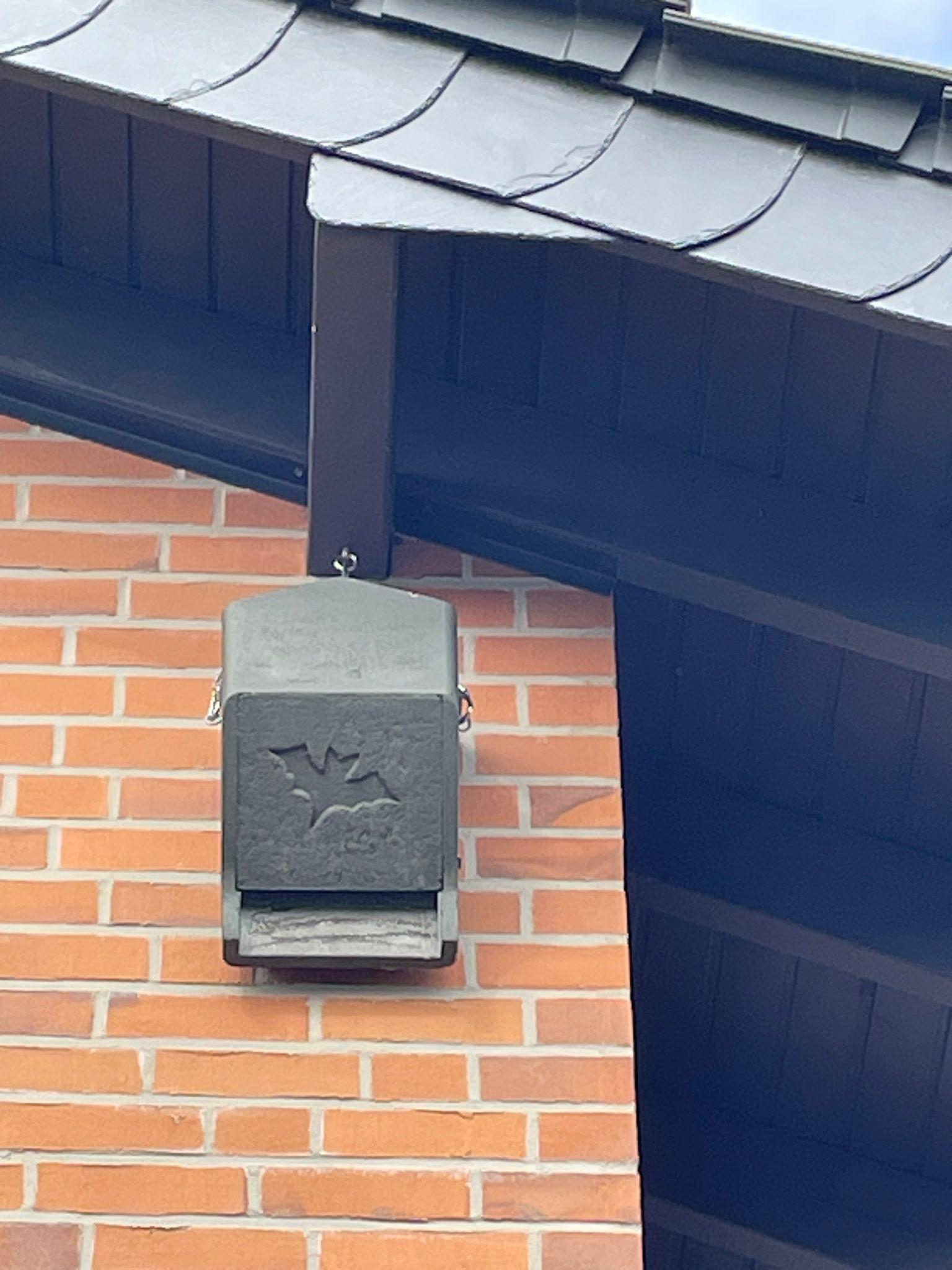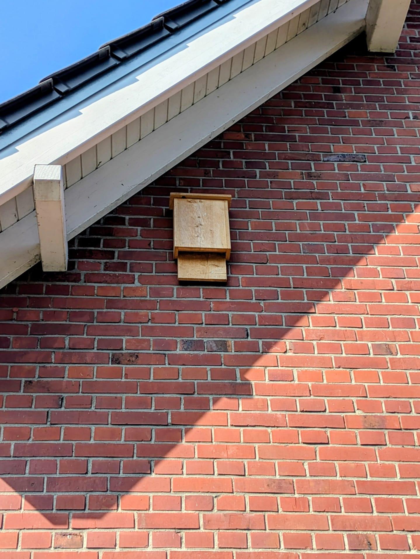 In Vinnum wurde ein Wochenstubenkasten für eine ganze Fledermauskolonie in etwa fünf Metern Höhe mit Ausrichtung nach Süden und Norden angebracht.