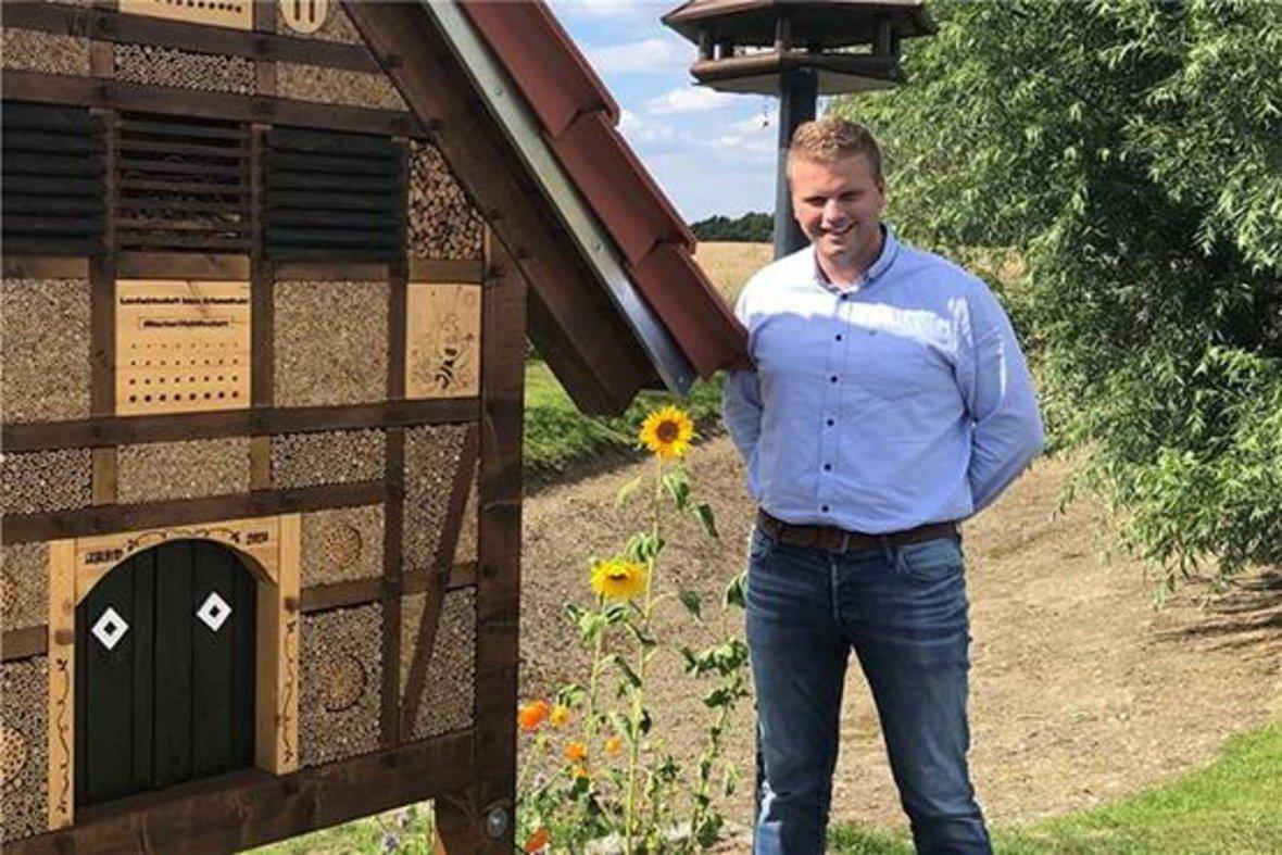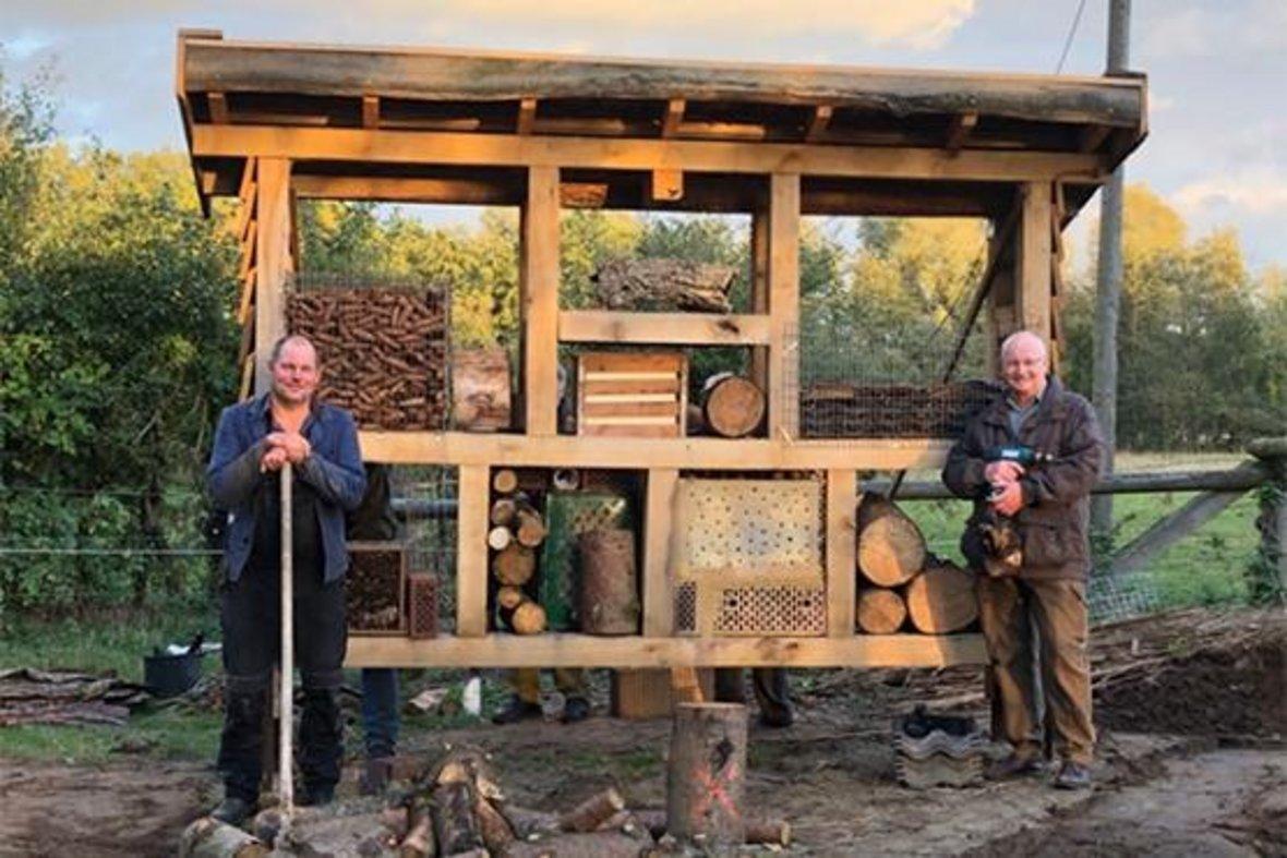 Auf dem landwirtschaftlichen Betrieb Schulte im Busch wurde ein etwa 2,50 m hohes Insektenhotel in ca. 100 Arbeitsstunden gemeinsam mit der Familie und Freunden errichtet. Optisch ist es an ein Fachwerkhaus angelehnt. Schmetterlinge, Ohrwürmer, Florfliegen, Organismen sowie Wild- und Mauerbienen sollen hier zukünftig ein neues Zuhause finden.